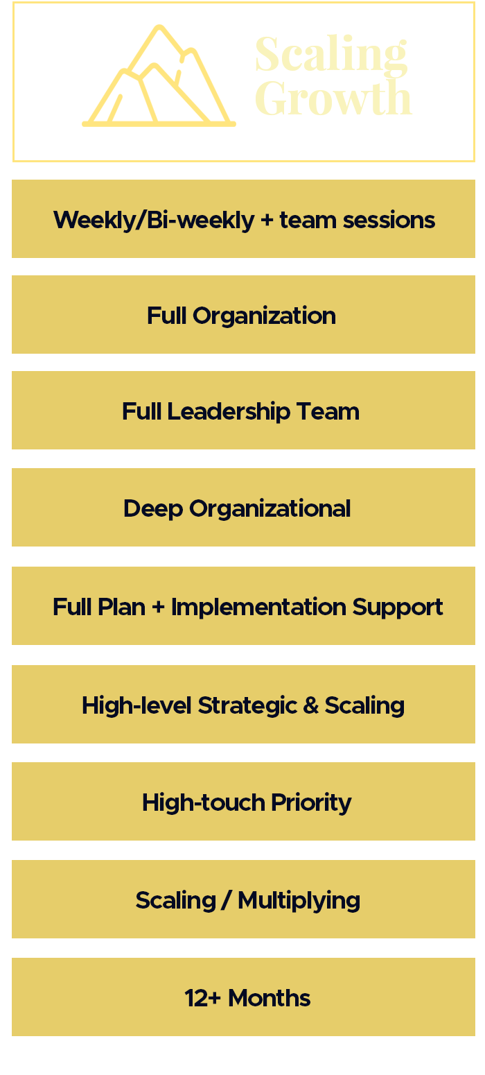 Scaling Growth is designed for full leadership team engagement, including workshops, alignment sessions, and department-level support.